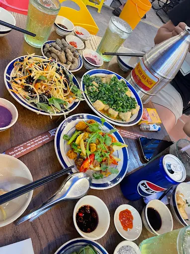 Ngoài ra quán còn có các món quen thuộc như chân gà, gỏi bò, cá diêu hồng chiên xù, nghêu hấp thái… phần nào cũng khá đầy đặn, phù hợp đi nhóm đông người.