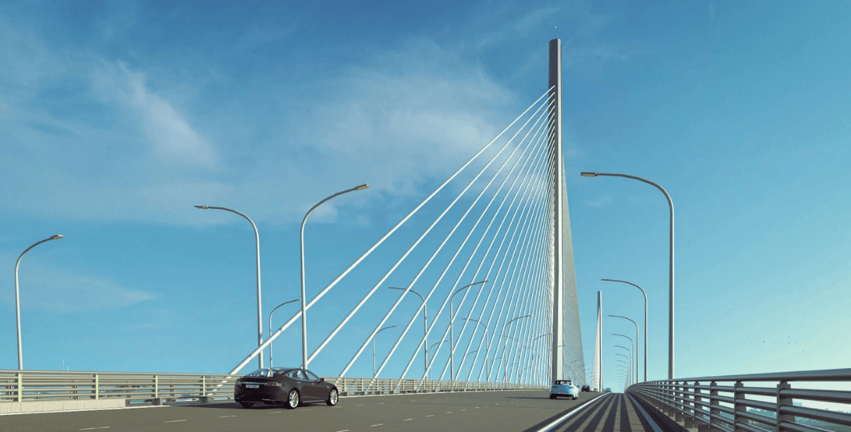 Thiết kế cầu Long Hưng nối TP HCM - Đồng Nai với phương án dây văng, trụ tháp hình bảo kiếm vừa đoạt giải nhất do UBND tỉnh Đồng Nai trao.