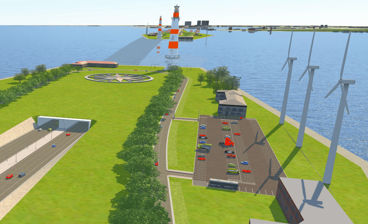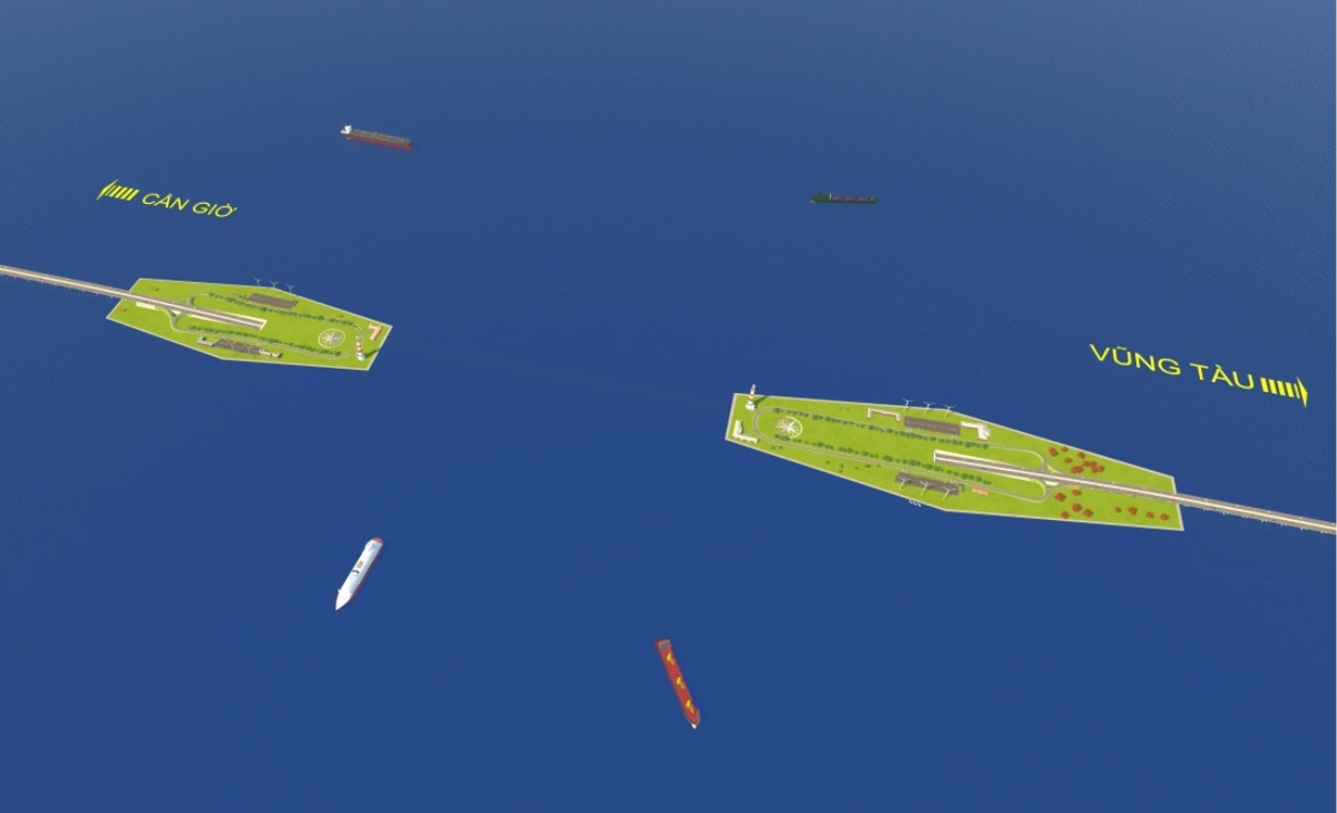 Thiết kế sơ bộ đảo nhân tạo ở đầu hầm ngầm hướng Cần Giờ đi Vũng Tàu. Trên đảo bố trí các mảng xanh, công trình tiện ích, giao thông nội khu, bãi đỗ xe cùng các dịch vụ kèm theo. Đây cũng là nơi để người dân, du khách có thể dừng chân nghỉ ngơi, ngắm cảnh trên hành trình.
